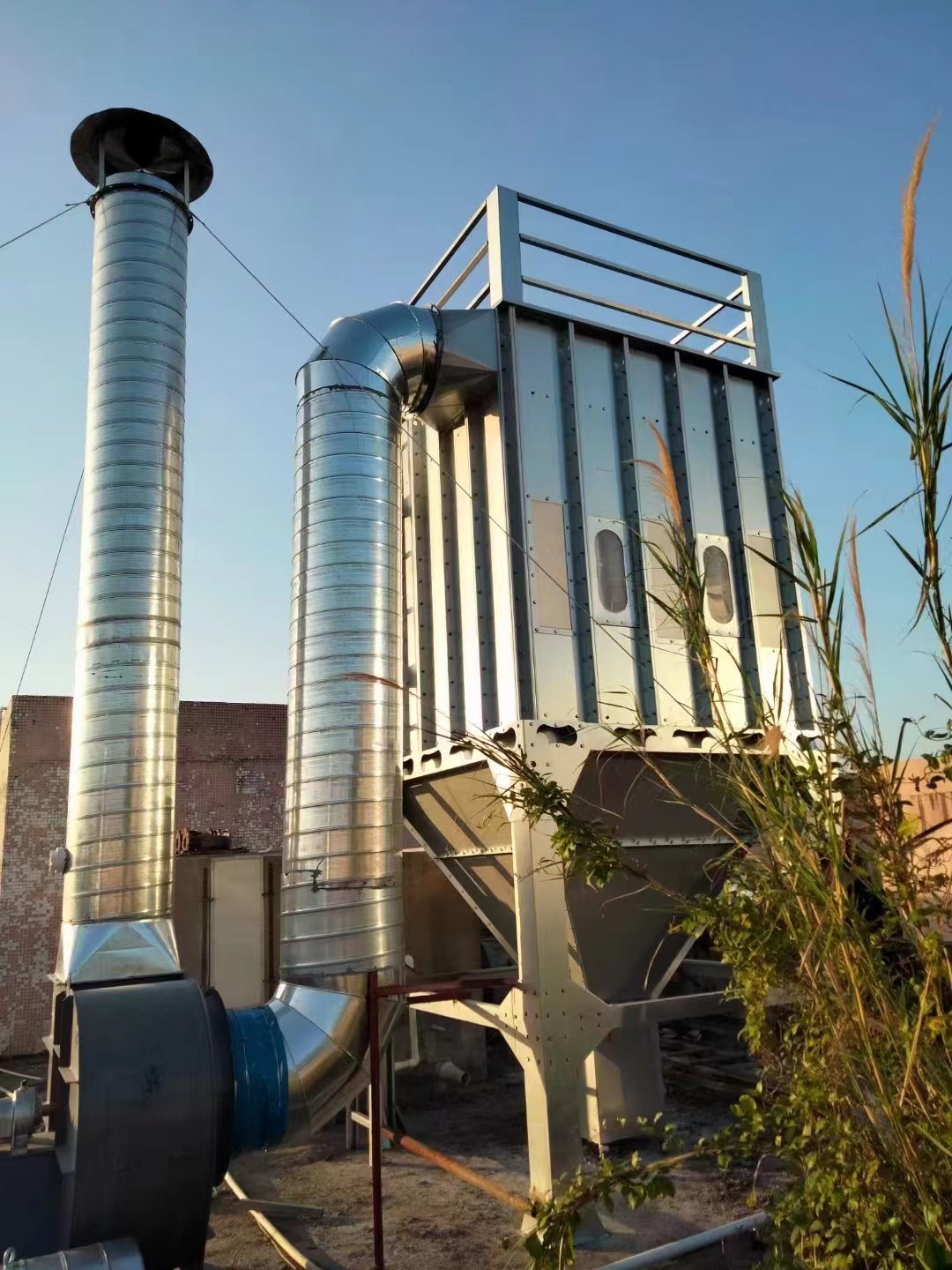 当脉冲布袋除尘器处于正常工作状态时,灰尘气体通过进气口顺畅地进入尘斗。由于气体体积的快速膨胀,一些较重的灰尘颗粒在惯性和自然沉降的作用下,迅速落入尘斗。随着气流继续进入袋室,更多的灰尘颗粒被扬起。这些颗粒在通过滤袋的过滤后,被留在滤袋外部,而净化后的气体则从滤袋内部穿过,进入上壳,并通过阀孔终排放到大气中,从而实现了对灰尘的有效清除。
