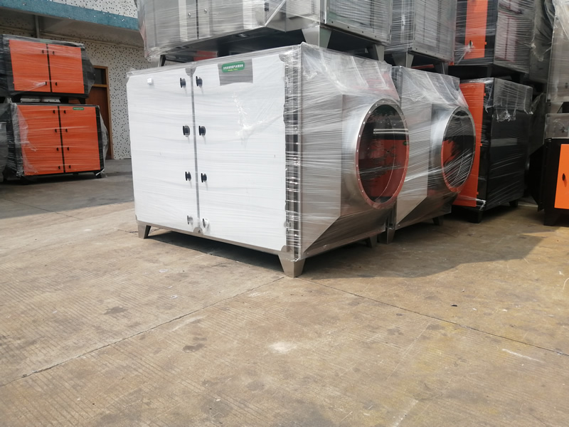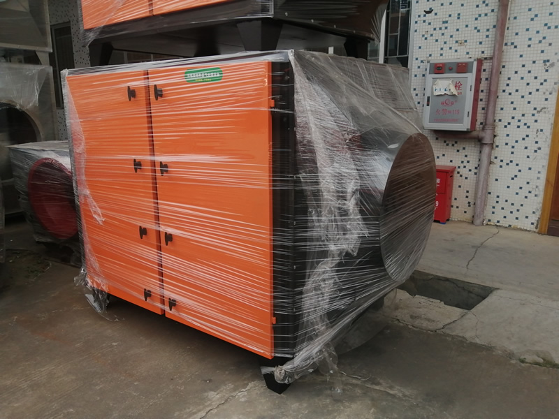 活性炭吸附废气处理设备,车间有机废气通过吸气罩收集,在排风机作用下,经过管道输送进入干式过滤器,再进入活性炭吸附装置,有机污染物被活性炭吸附,净化后的气体经风机增压后达标排放。